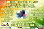 For the last five years the David Idowu Foundation has organised a ‘peace day’ event with stalls, music and speeches on the Saturday closest to the anniversary of David’s tragic death. This year the peace day will take place on Saturday 12th July, 12.00pm-6.00pm.