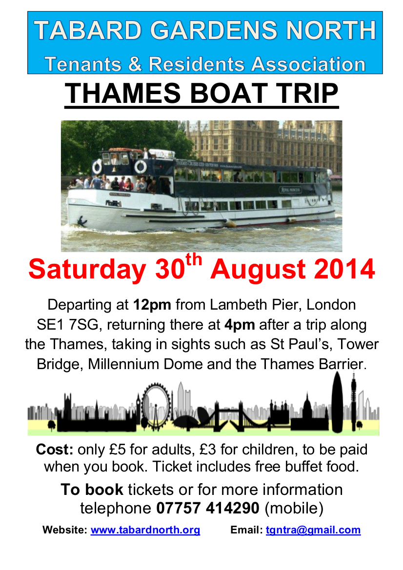 Thames Boat Trip, Saturday 30th August 2014 Posted by tgntra 0 THAMES BOAT TRIP pdf Share this: Click to share on X (Opens in new window) X Click to share on Facebook (Opens in new window) Facebook Like Loading... Related