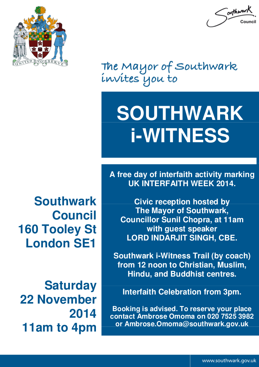 Saturday 22nd November – Southwark i-Witness 2014 Posted by tgntra 0 Share this: Click to share on X (Opens in new window) X Click to share on Facebook (Opens in new window) Facebook Like Loading... Related