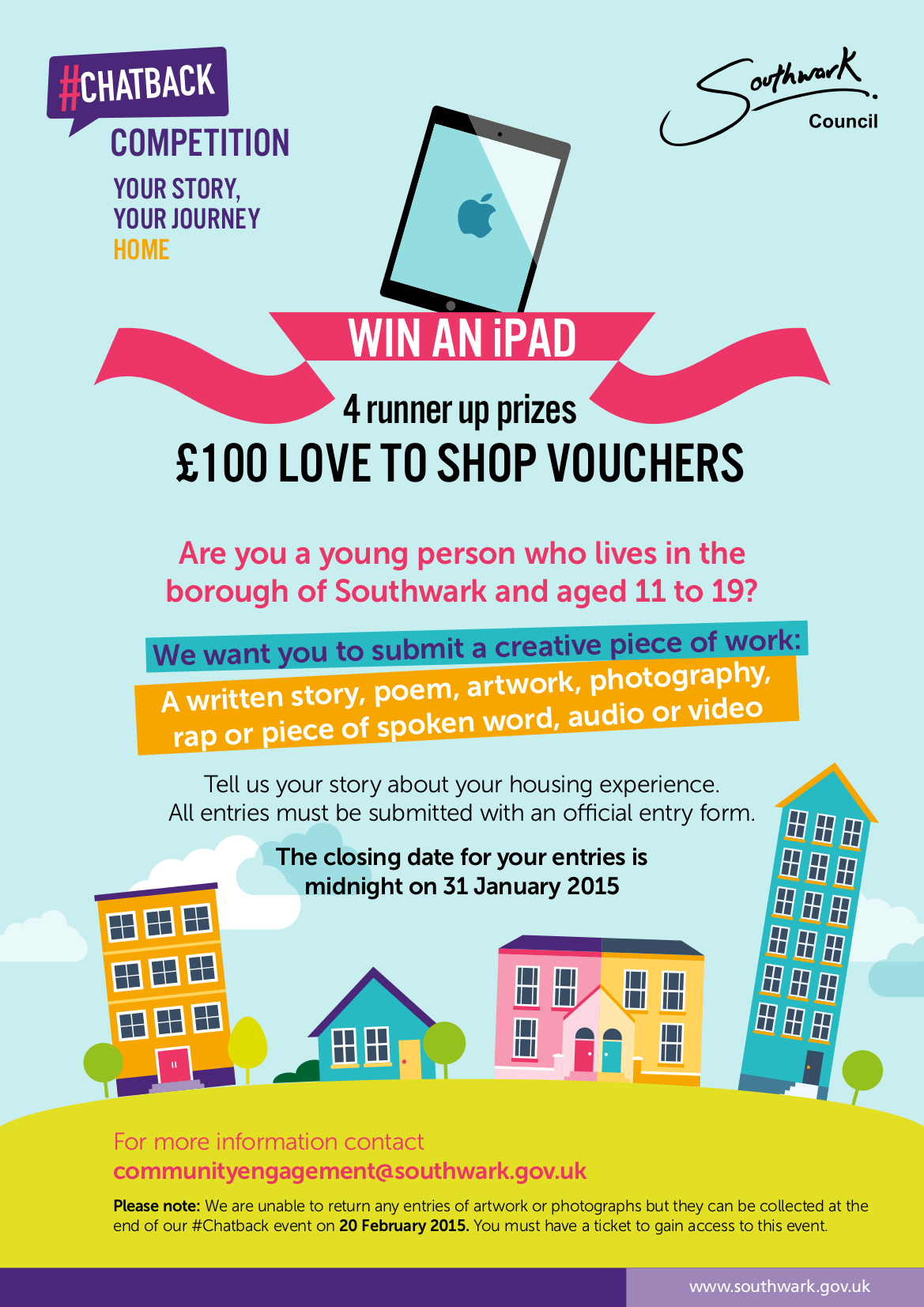 Southwark Council are looking for local talent to be a part of our #CHATBACK event at Ministry of Sound 20 February 2015.