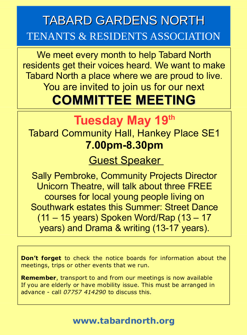 Committtee Meeting – Tuesday 19th May, 7.00pm Posted by tgntra 0 Committee Meeting poster 19th May 2015 Share this: Click to share on X (Opens in new window) X Click to share on Facebook (Opens in new window) Facebook Like Loading... Related
