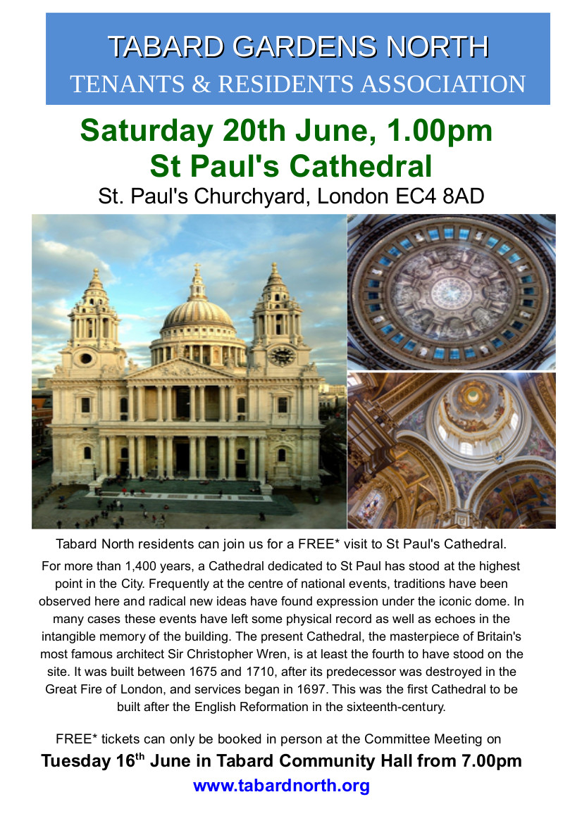 T&RA visit to St Paul’s Cathedral, 20th June 1.00pm Posted by tgntra 0 Share this: Click to share on X (Opens in new window) X Click to share on Facebook (Opens in new window) Facebook Like Loading... Related