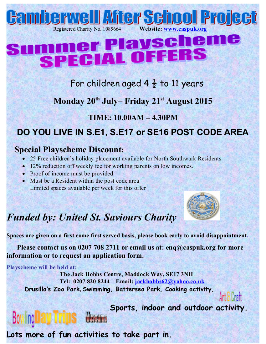 Camberwell After School Project: Summer Playscheme. Posted by tgntra 0 Share this: Click to share on X (Opens in new window) X Click to share on Facebook (Opens in new window) Facebook Like Loading... Related