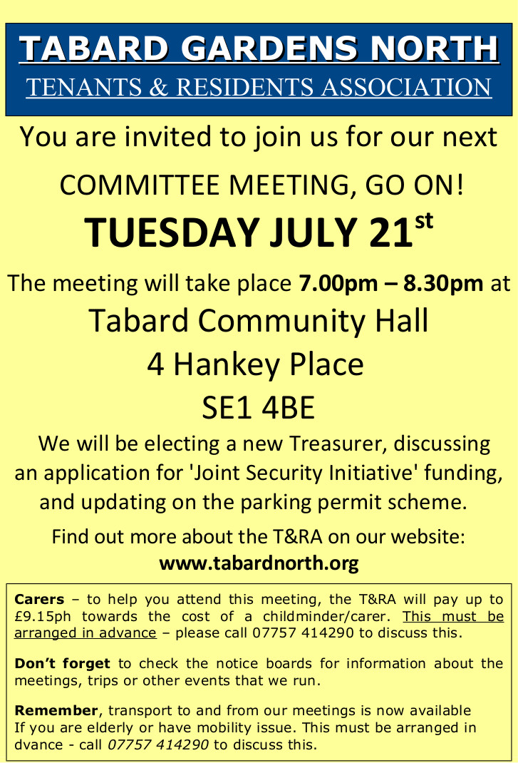 Committee Meeting, 21st July at 7.00pm. Posted by tgntra 0 Share this: Click to share on X (Opens in new window) X Click to share on Facebook (Opens in new window) Facebook Like Loading... Related