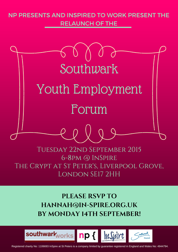 YEF Background: The forum was set up for the purpose of bringing together partners and providers who have a common interest in tackling youth employment issues in Southwark. Our aim is to develop a joined up partnership approach to providing employment support for young people, and to re-design the forum to meet the needs of its current and future members.