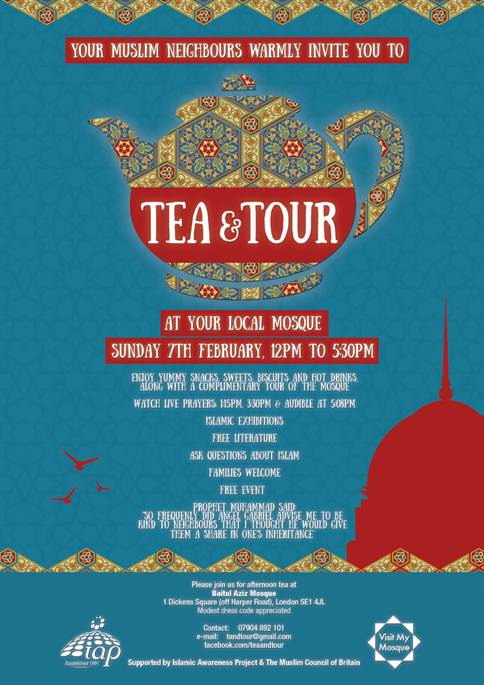 Tea & Tour, Harper Road Mosque, Sunday 7th February Posted by tgntra 0 Share this: Click to share on X (Opens in new window) X Click to share on Facebook (Opens in new window) Facebook Like Loading... Related