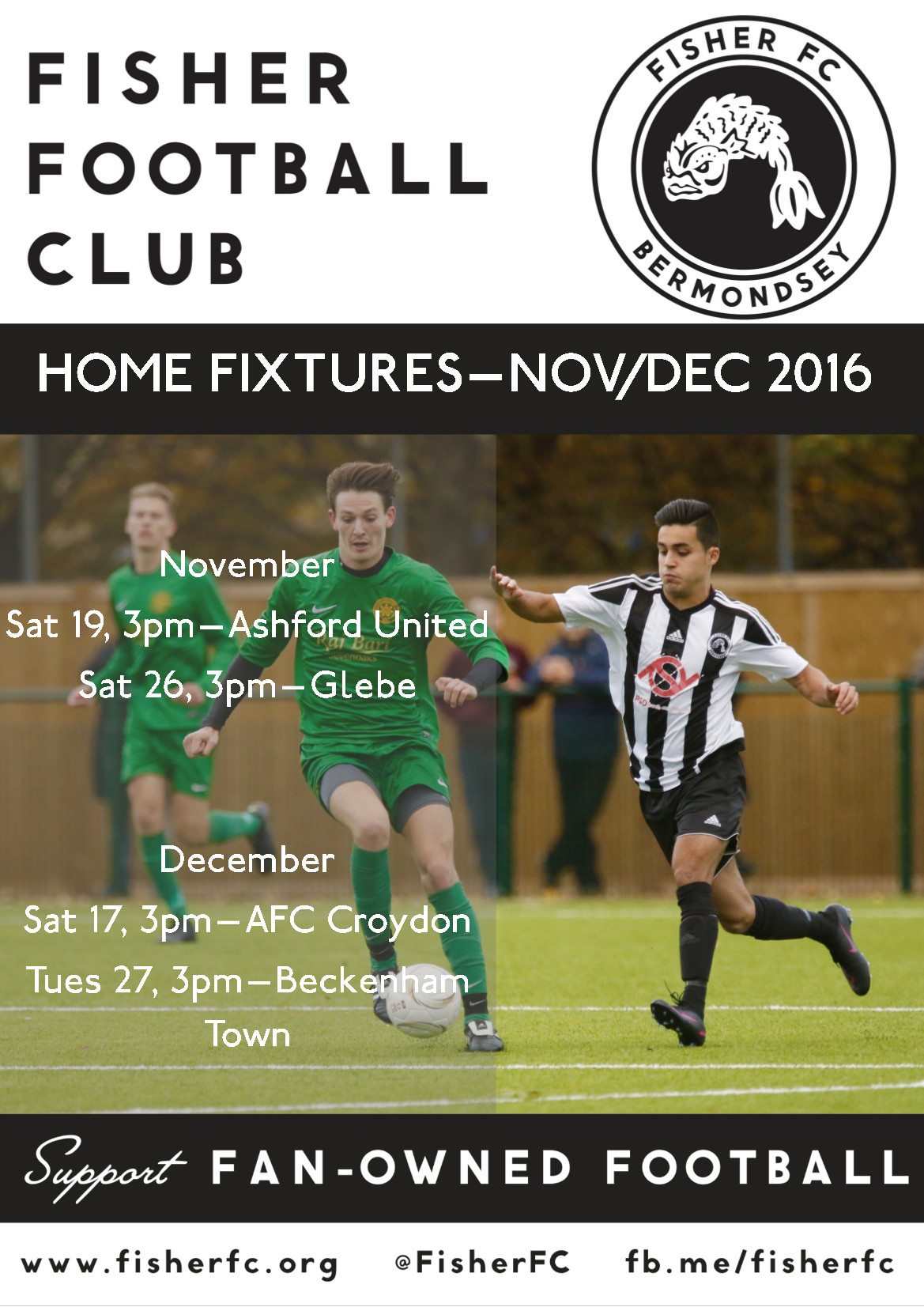 Fisher FC Home Fixtures. Posted by tgntra 0 novdec-fixture-poster-new-design Share this: Click to share on X (Opens in new window) X Click to share on Facebook (Opens in new window) Facebook Like Loading... Related