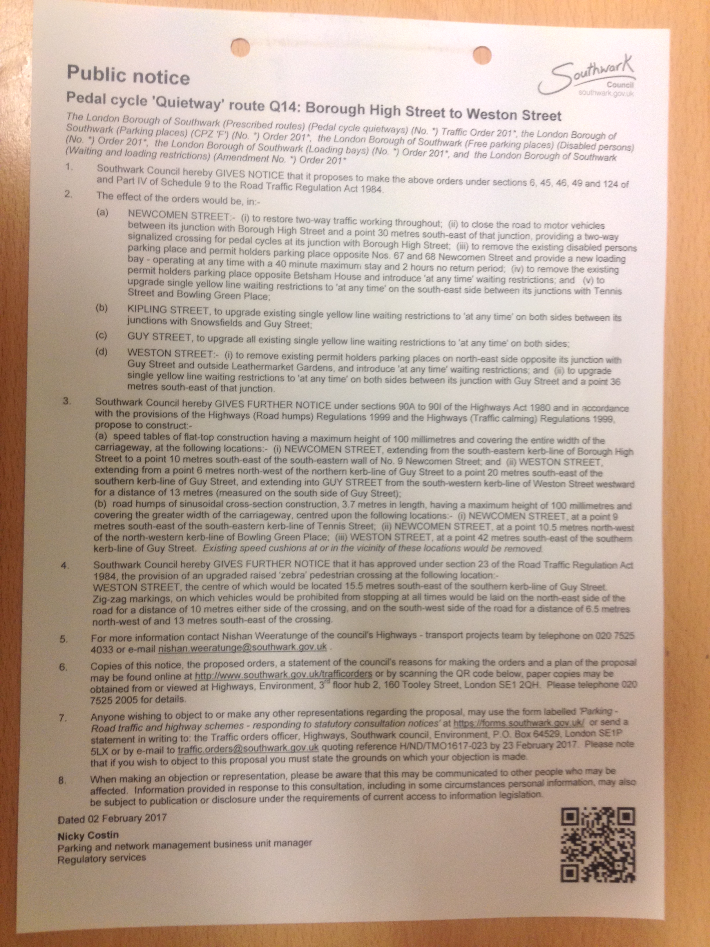 Newcomen Street cycle quietway consultation Posted by tgntra 0 Share this: Click to share on X (Opens in new window) X Click to share on Facebook (Opens in new window) Facebook Like Loading... Related