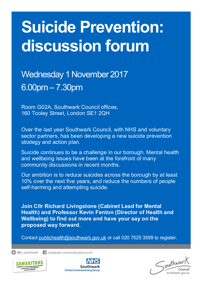 Suicide Prevention – consultation event Wednesday 1st November Posted by tgntra 0 Share this: Click to share on X (Opens in new window) X Click to share on Facebook (Opens in new window) Facebook Like Loading... Related