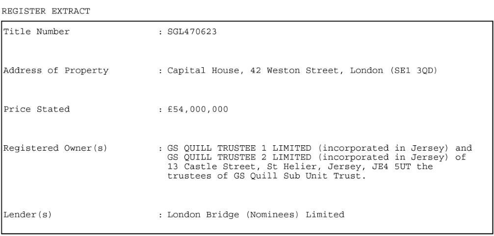 Land Registry title register entry as of April 2017 (when former anonymous Jersey-based owners passed the golden goose to new anonymous Jersey-based owners (Greystar?)