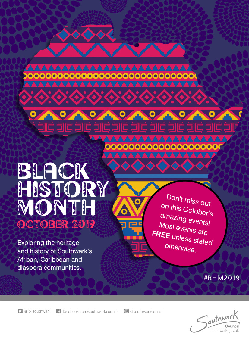 In Southwark, Black History Month has been recognised for over 25 years with a month long programme of exciting and inspirational events and workshops. Every year throughout October people, schools, libraries, groups and organisations host events and get involved with the celebration of black history.