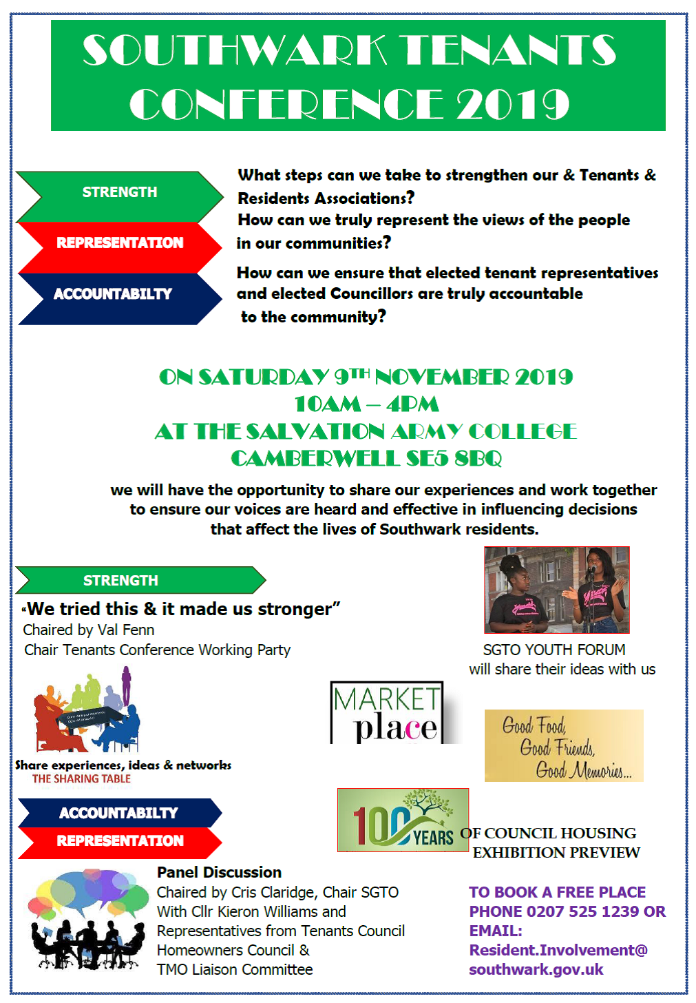 Southwark Tenants Conference, Saturday 9th November Posted by tgntra 0 Share this: Click to share on X (Opens in new window) X Click to share on Facebook (Opens in new window) Facebook Like Loading... Related